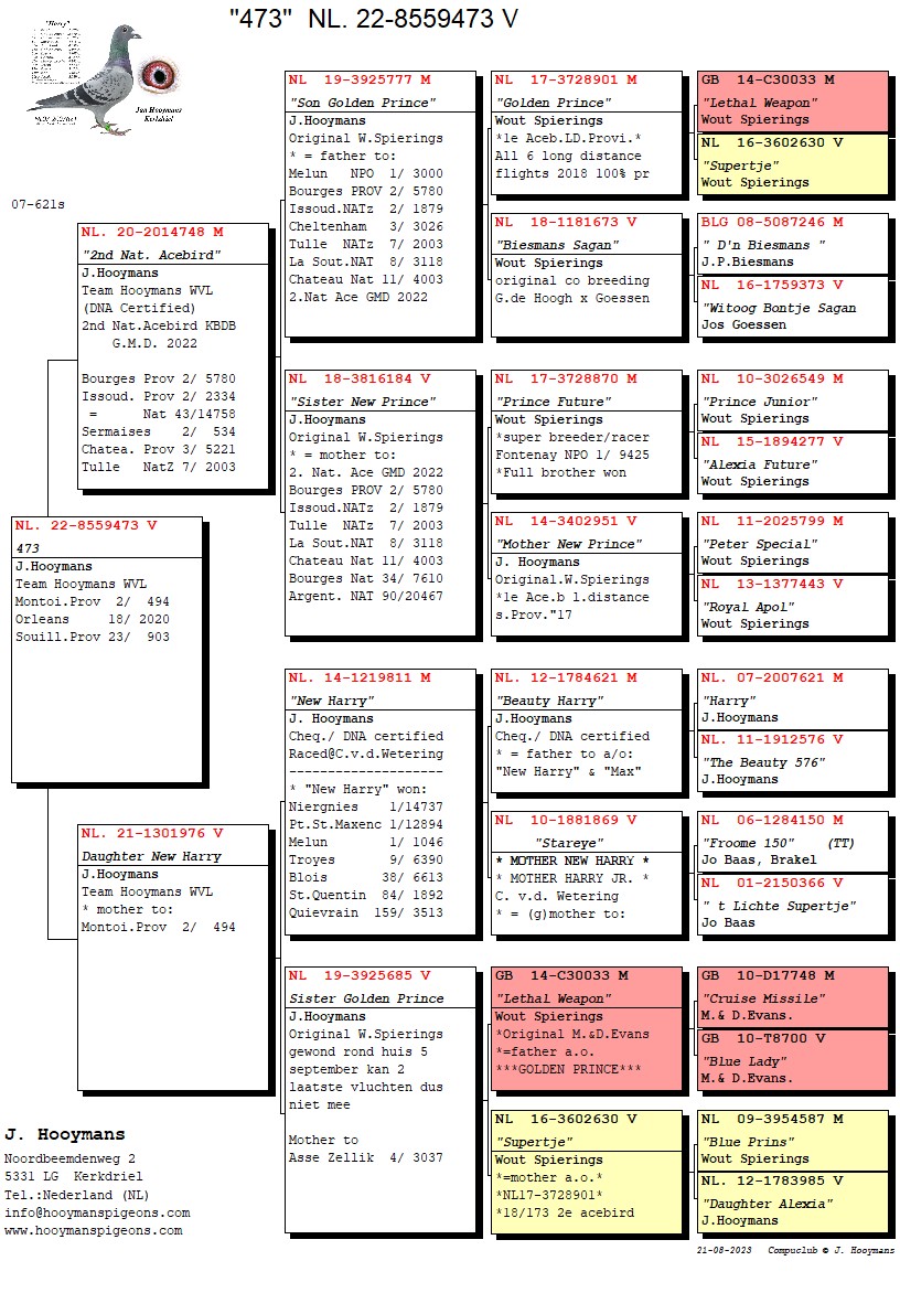 De 1e oude duif was een duivin, uit de 2e Nationaal Asduif Grote Halve Fond 2022 met dochter New Harry. De 2e oude duif was een doffer, eentje die zich al vaker had laten zien met name bij warme omstandigheden. Zijn vader is uit “New Harry x Alexia” en zijn moeder is “Kleine Blue” (superduifje in Zuid Afrika, gekweekt door Bobby Brown). Hieronder de stamkaarten van de 2e en 8e Provinciaal:
