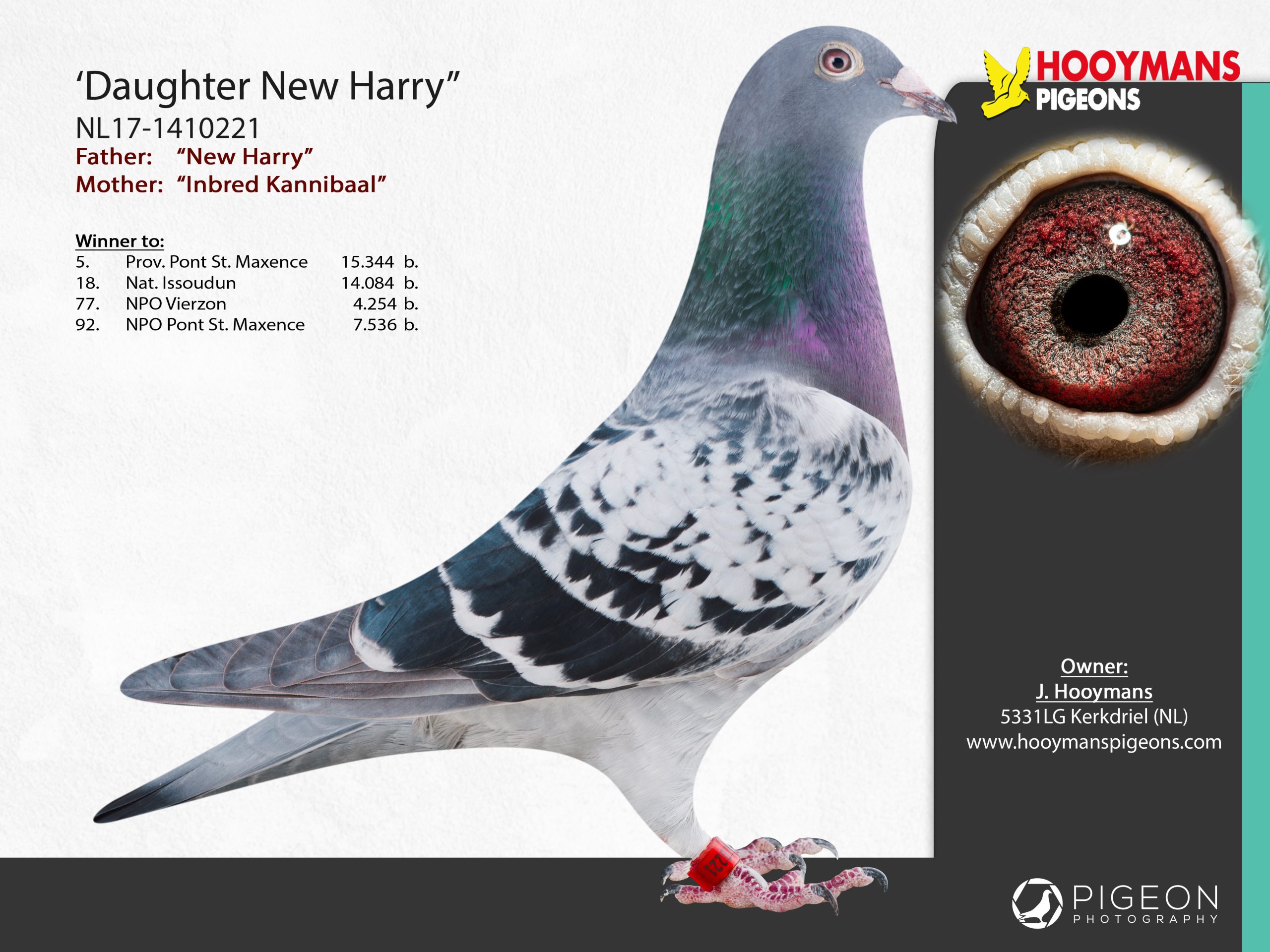 Ze is een kleindochter van zowel New Harry en Blue Brave en ze prijkt momenteel bovenaan in de ranking Jaarlingen op de Grote Halve Fond. Om Nationaal Asduif te worden moet ze nog 1 topnotering binnenslepen, we zijn benieuwd of dit gaat lukken.