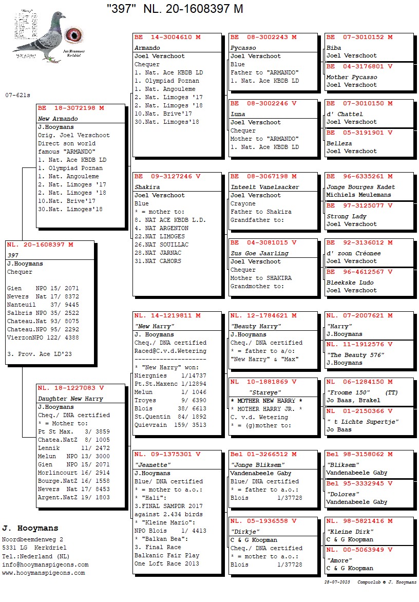 Hieronder de stamkaarten van onze eerste 3 duiven en de foto van Beauty Tony.