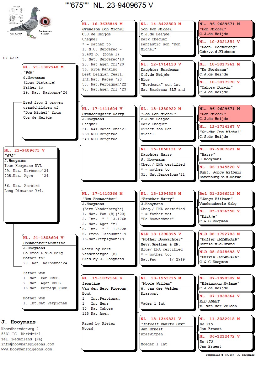 1e Provinciaal Bourges, snelste van 6.187 oude en jonge duiven met dochter “Kleine Harry”