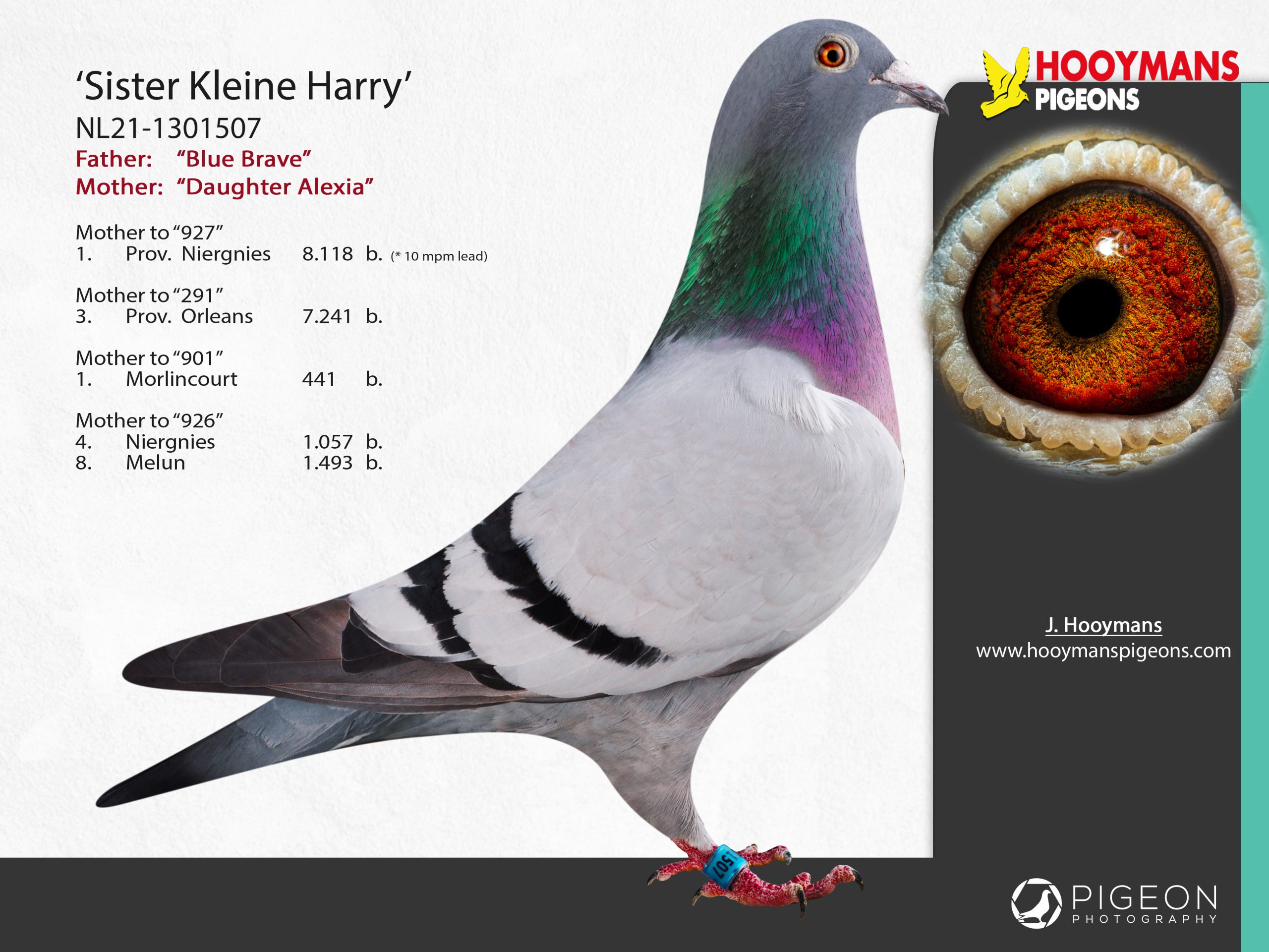De eerste duif is een kind van onze superdoffer “Wout” en hij stond gekoppeld aan een zus van “Kleine Harry” (welke eerder reeds een 1e provinciaal van meer dan 8.000 duiven gaf bij Team Hooymans NL). Wij zijn van mening: ‘wat goed is komt snel’ en dat blijkt steeds weer. Ook nu met onze nieuwe supersterren “Red Harry”, “Wout”, “Kleine Harry”…kinderen van hun kloppen direct al op de deur met vroege prijzen, en dat is waar het om draait.