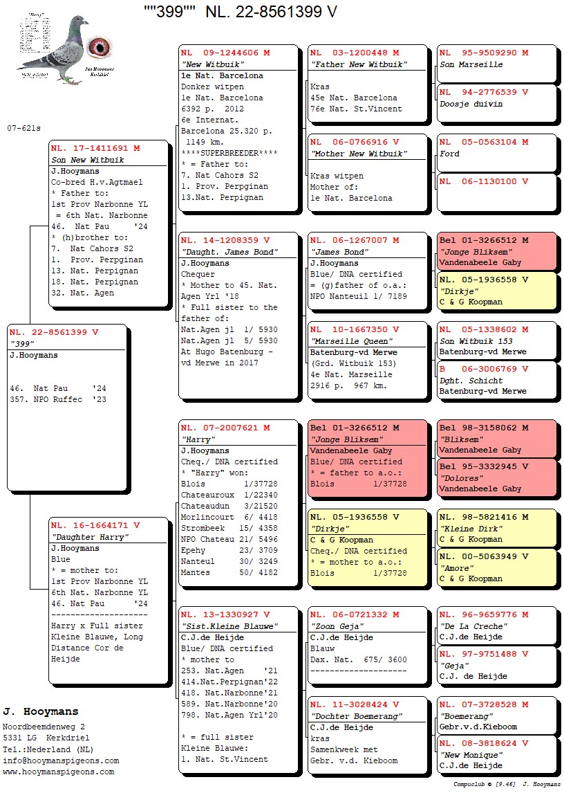 Verder zien we in de stamkaarten uiteraard opnieuw de fantastische De Heijde lijnen en New Witbuik, tezamen met het Harry-bloed. Overigens zijn de 3e en 4e duif onze 1e en 2e getekende duif. Hieronder de afkomst van de vier duiven die top100 NPO vlogen: