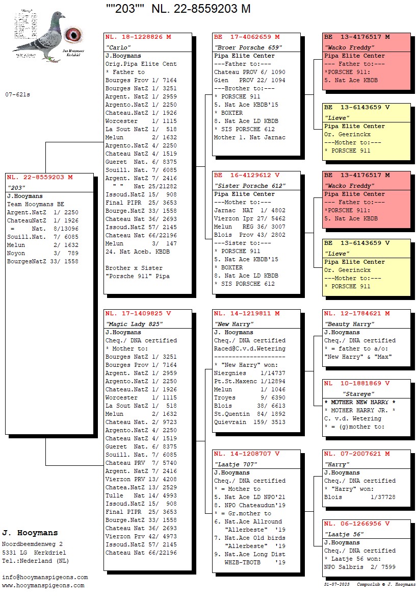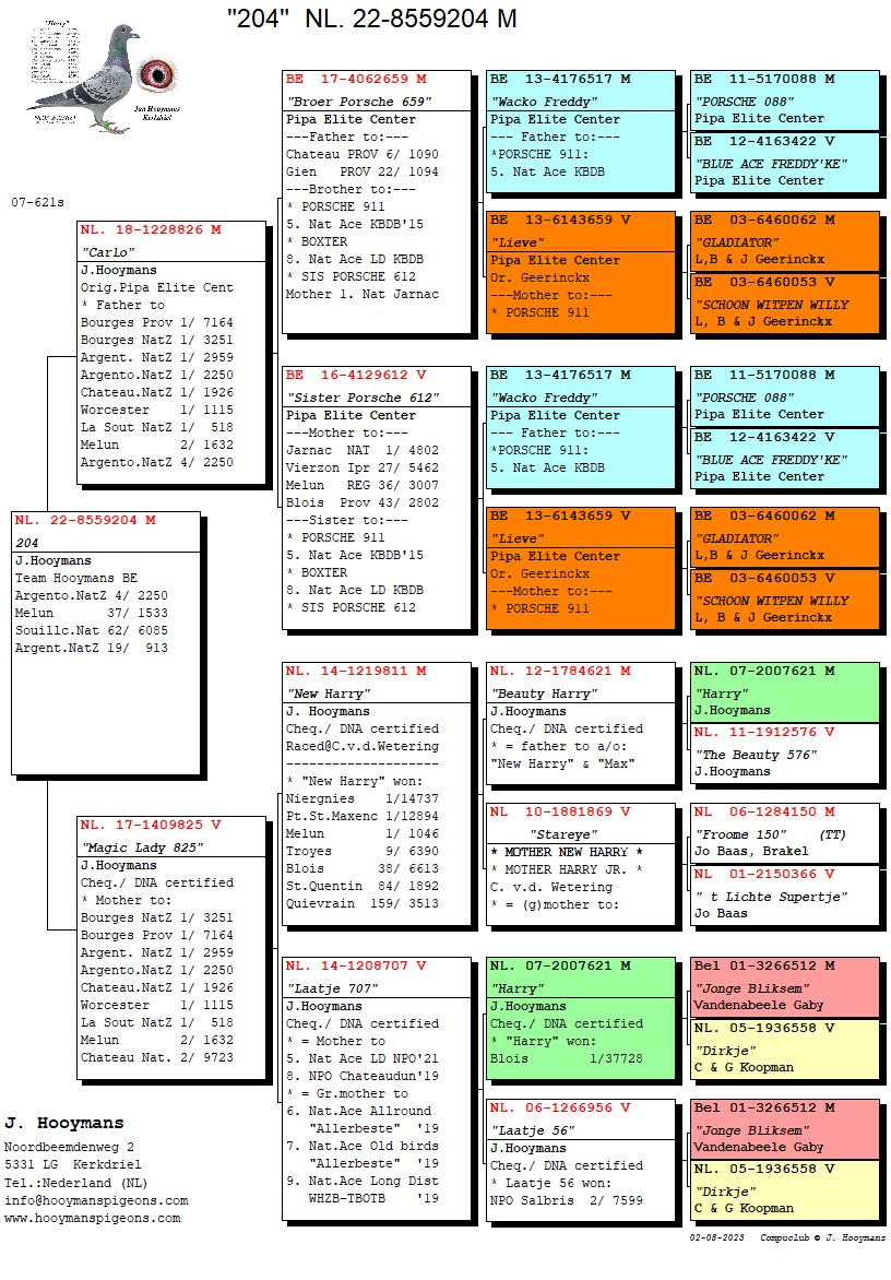 Hieronder de stamkaarten van de 2e t/m 5e duif die allen top100 Nationaal winnen: