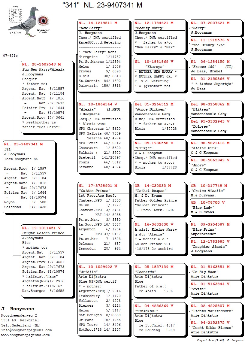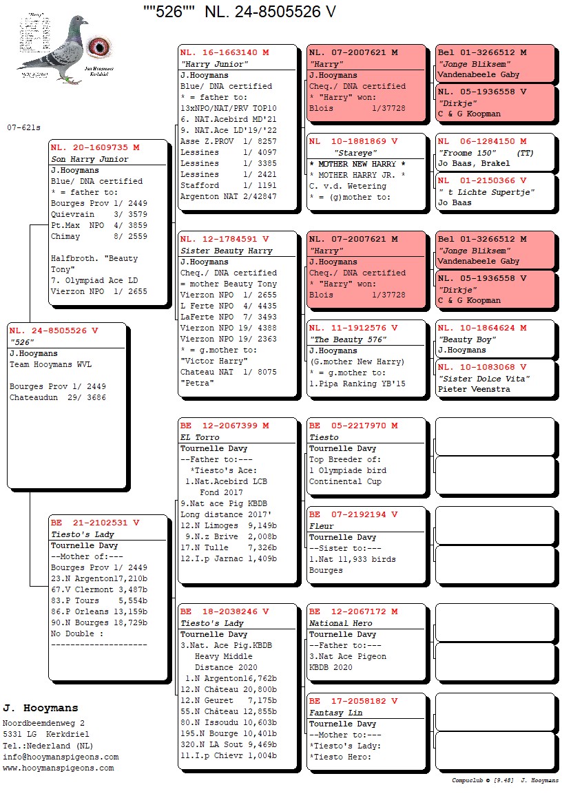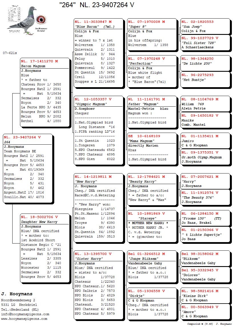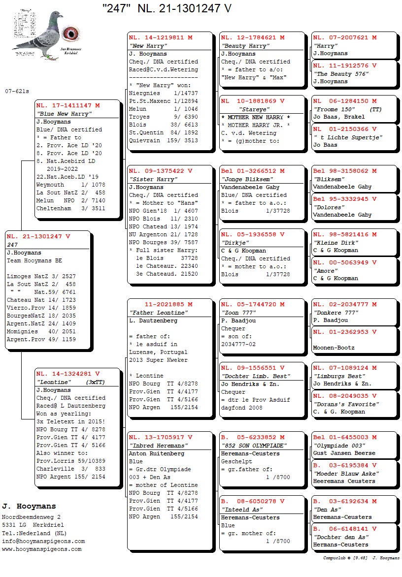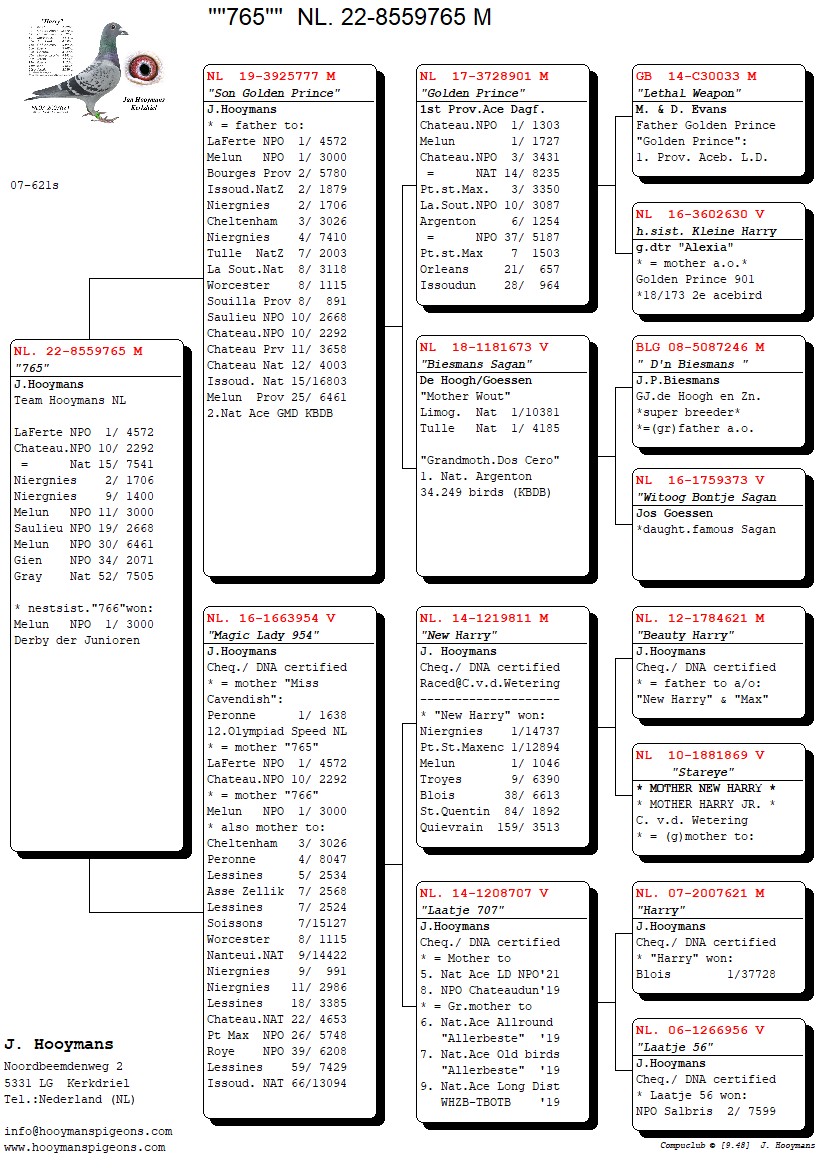 In hetzelfde weekend wint overigens een zoon van “Kleine Harry & Olympic Lieke” de 1e Morlincourt van 2.463 duiven bij Team Hooymans NL.